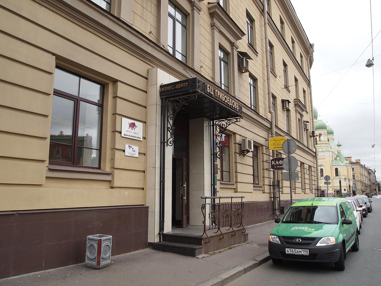 Здание расположено в 5 минутах ходьбы от Театральной площади, на Набережной канала Грибоедова и имеет внутри дворовую закрытую парковку на 20 машиномест. Парковочные места также есть на прилегающих улицах.