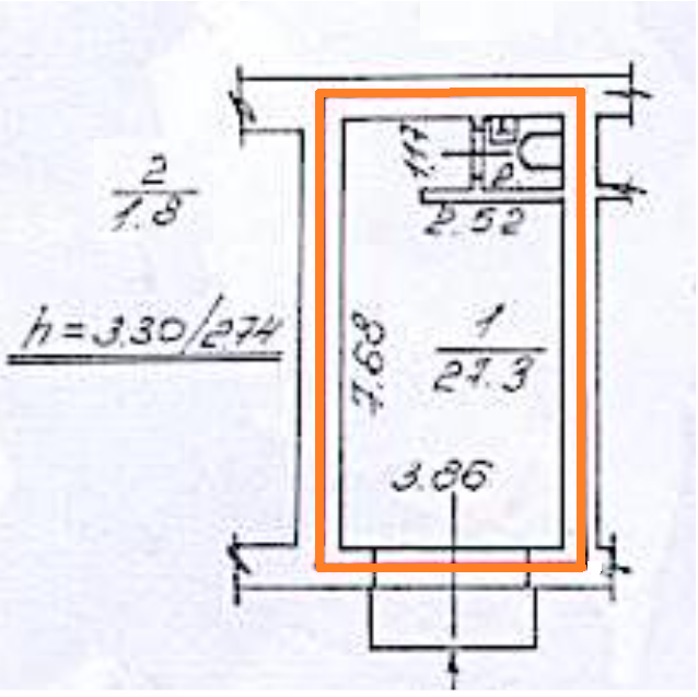 Высота потолка 3.30 м. - 2.75 м.