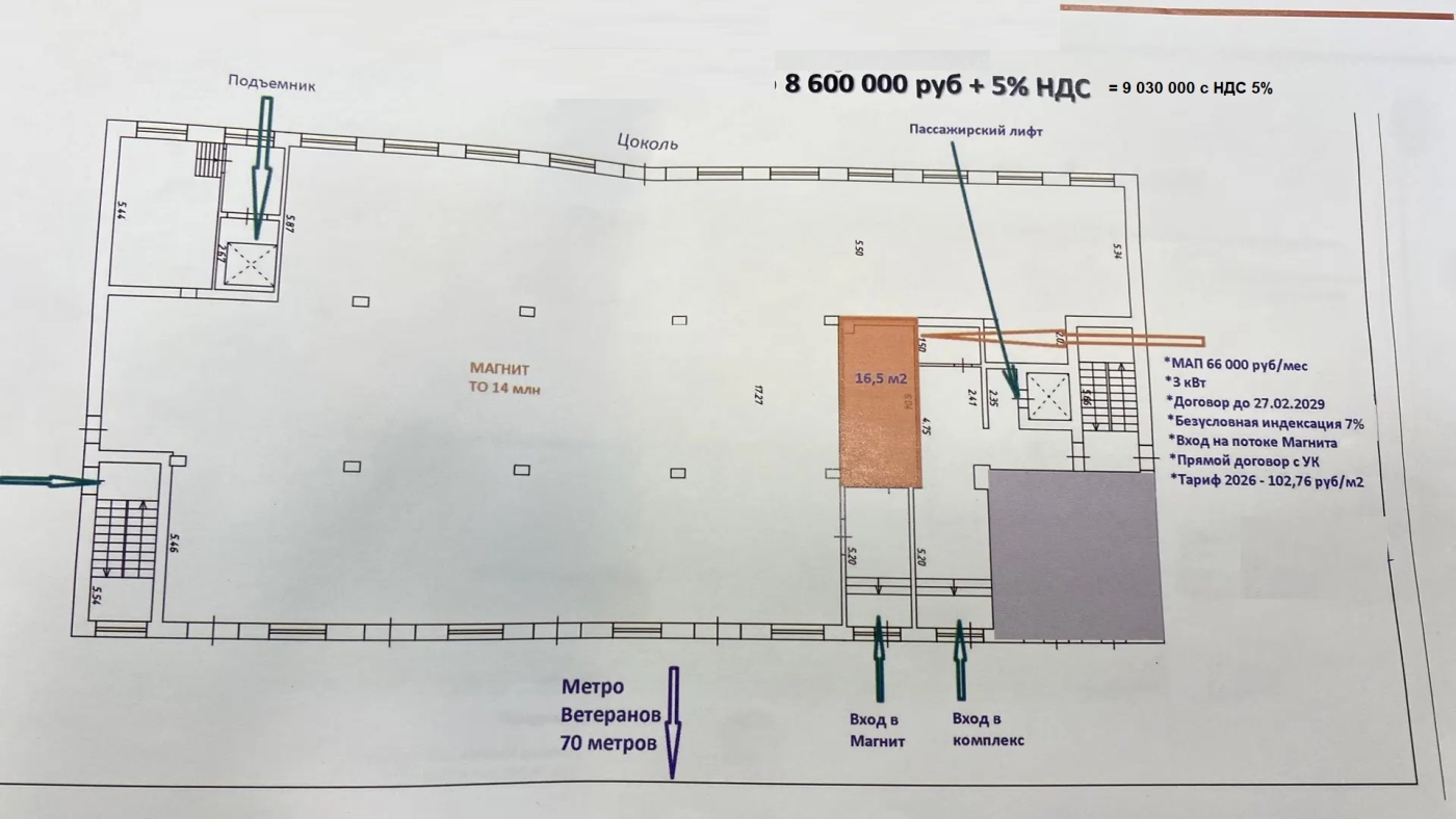 Продается готовый арендный бизнес у метро Проспект Ветеранов, 1 минута пешком от метро.