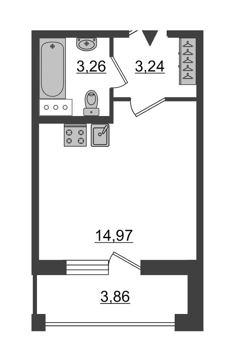 Жилая площадь: 14.97 м2