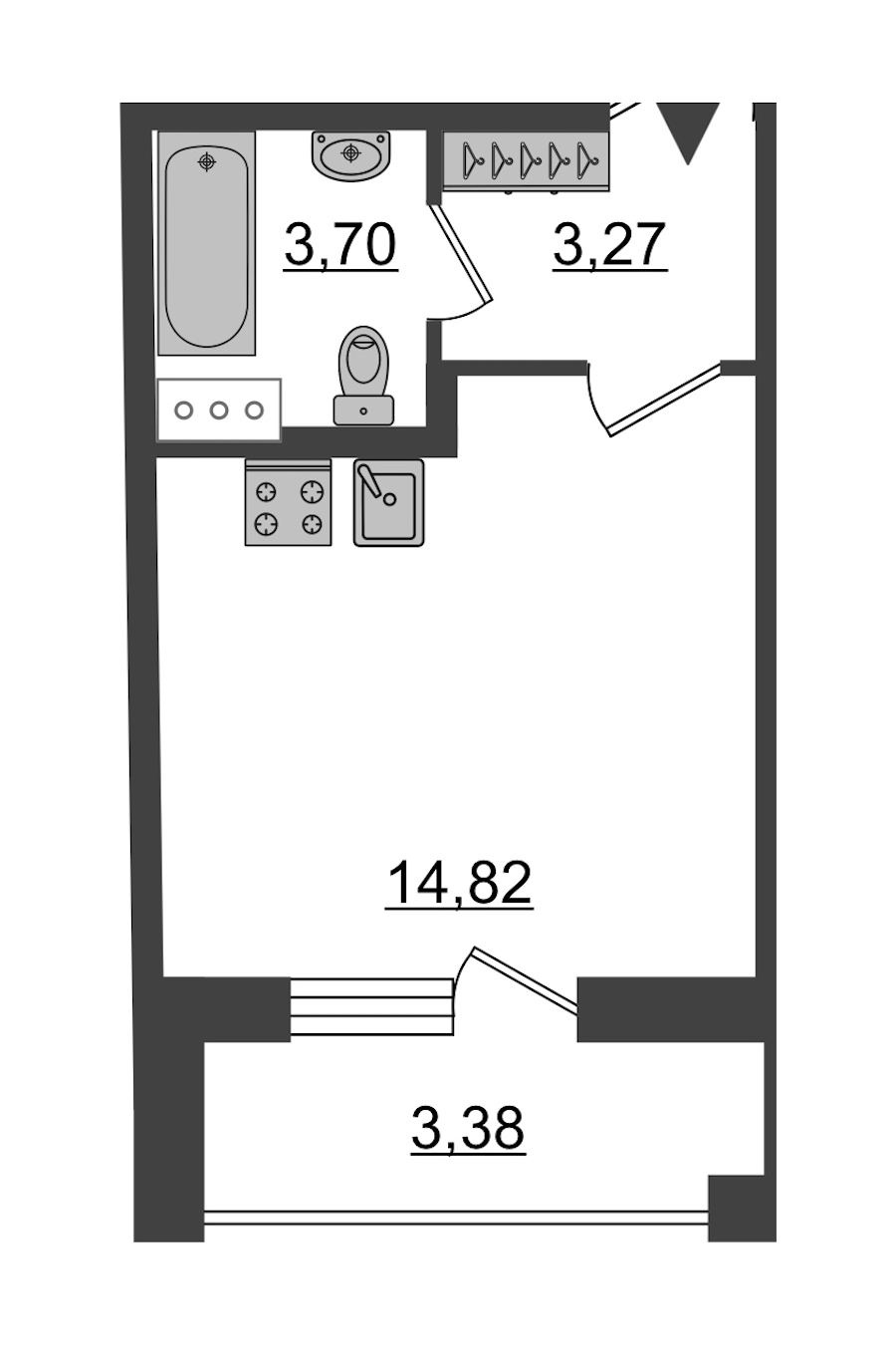 Жилая площадь: 14.82 м2